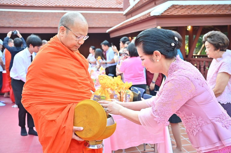 คณาจารย์ และเจ้าหน้าที่ เข้าร่วมกิจกรรม “บุญสุนทาน” กิจกรรมตักบาตรพระภิกษุ จำนวน 9 รูป และกรวดน้ำรับพร ณ เรือนไทยจุฬาลงกรณ์มหาวิทยาลัย และร่วมถ่ายภาพกับผู้บริหารจุฬาลงกรณ์มหาวิทยาลัย